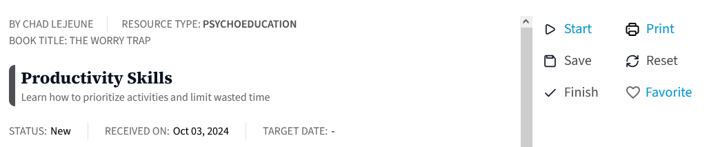 Can I download or print resources from my task list? Yes, provided your therapist has a paid, active account. Please note that your answers are only saved online and won’t appear printed on the document.